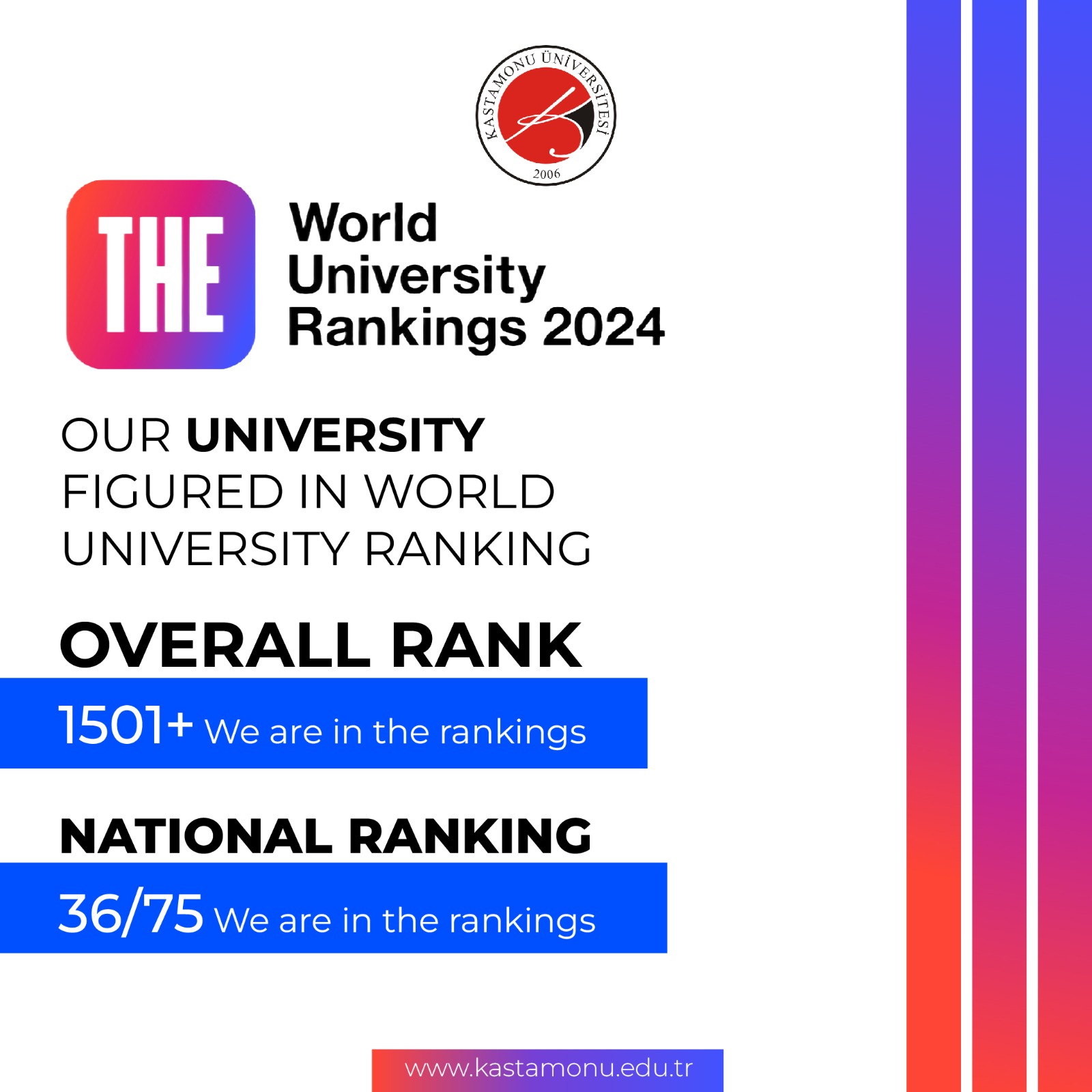Times Higher Education (THE), which provides up-to-date news about higher education and publishes rankings of the world's best universities, has published the world university ranking results for 2024.Times Higher Education (THE), one of the world's most well-known higher education rating organizations, announced the "World University Rankings 2024", which is based on the data of 1,904 universities that have achieved a certain standard in the international arena. In the ranking, where universities are evaluated academically according to 5 different basic criteria, Kastamonu University took its place among the world's most successful higher education institutions for the first time.