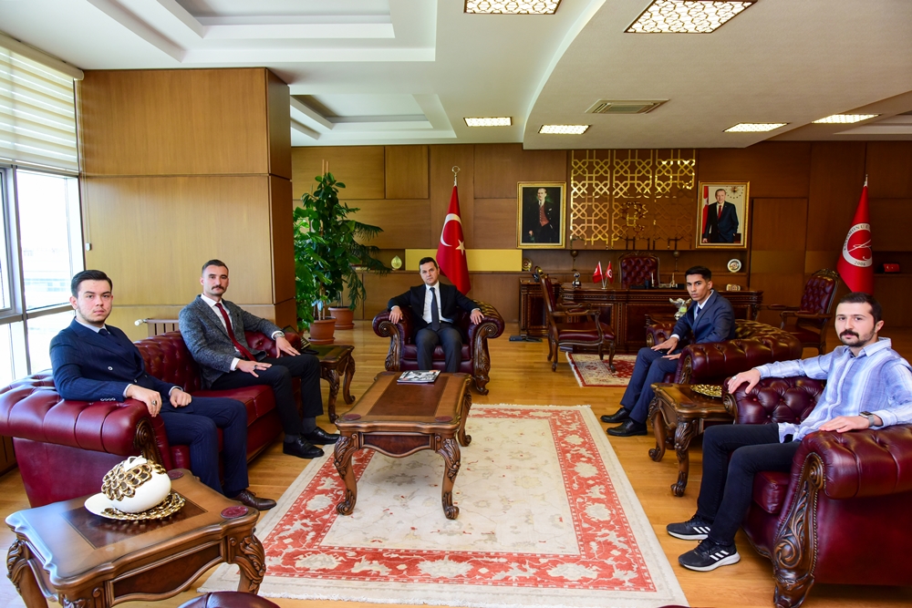 Yusuf Ekşioğlu, Kastamonu Provincial President of the Ülkü Ocakları, and the accompanying delegation of representatives of the provincial organization visited our Rector Prof. Dr. Ahmet Hamdi Topal in his office on 11 October 2024.Yusuf Ekşioğlu, Kastamonu Provincial President of the Ülkü Ocakları, and the accompanying delegation of representatives of the provincial organization visited our Rector Prof. Dr. Ahmet Hamdi Topal in his office on 11 October 2024.