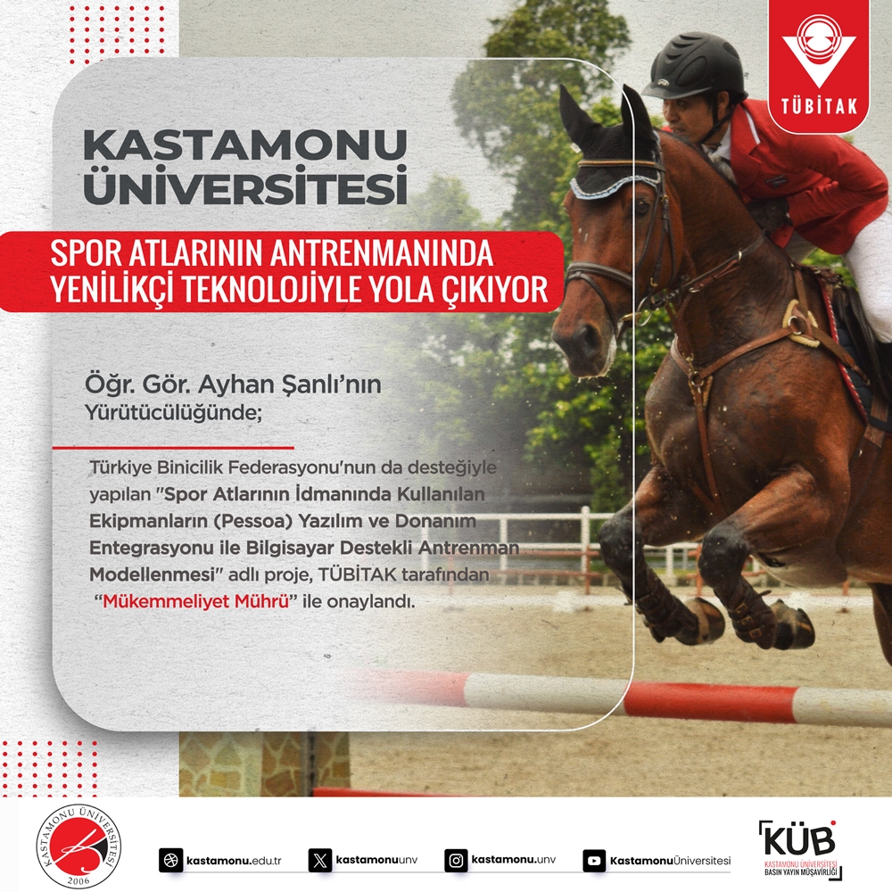 The project named "Computer Aided Training Modeling with Software and Hardware Integration of Equipment Used in the Training of Sports Horses (Pessoa)", carried out under the leadership of LecturerAyhan Şanlı, who works at Kastamonu University Daday Nafi and Ümit Çeri Vocational School, and with the support of the Turkish Equestrian Federation, was carried out by TÜBİTAK. Approved by the "Seal of Excellence".