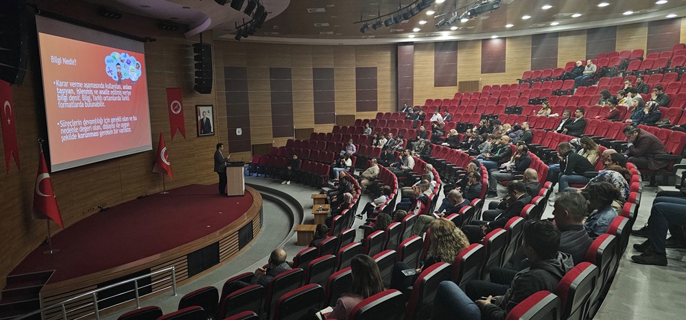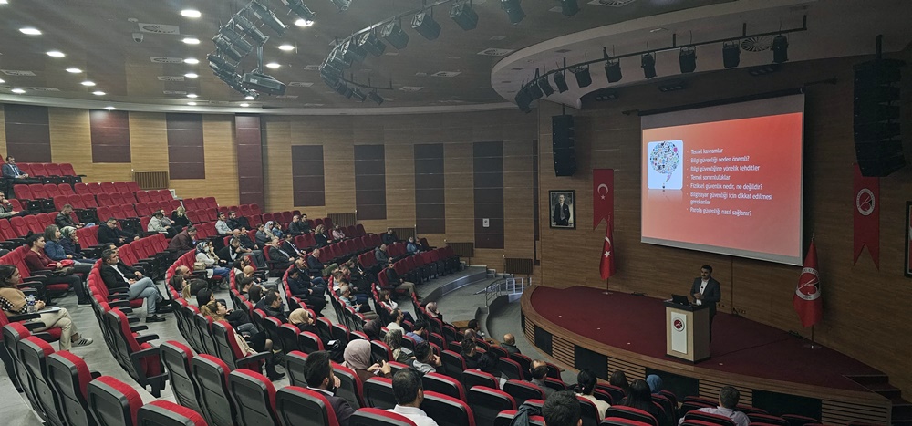 In order to contribute to the professional development of academic and administrative staff working at our university, a training on "Information and Communication Security Guide Awareness Training" and "Use of Onedrive Cloud Technologies, Information Security, Safe Internet Use, Virtual Fraud and Precautions" was held on September 16, 2023 at the Central Library Sezai Karakoç Hall.