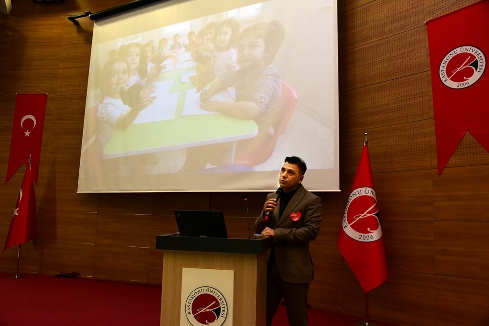 After Prof. Dr. Ömer Küçük, Erol Çelikel, Headmaster of Halime Çavuş Special Education Kindergarten, took the floor. Çelikel made a presentation titled "Physical and Psychosocial Developmental Characteristics of Children with Special Needs". In his speech, Çelikel stated that every child is actually an individual and that each individual shows a unique development process.