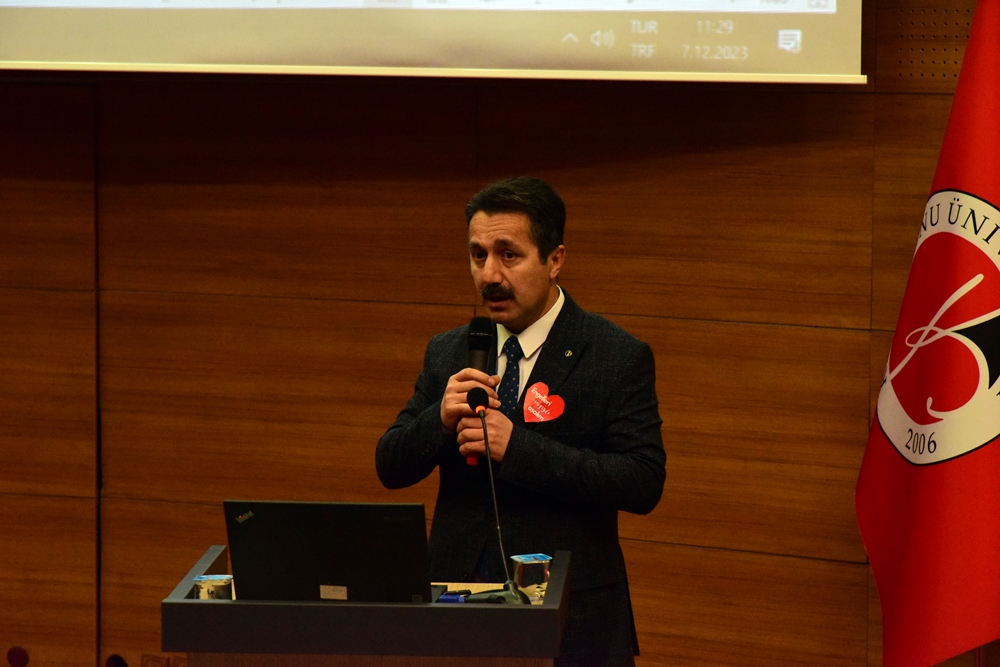 In the second part of the program after the break given to the event, Mücahit Muslu, Lecturer at the Department of Nutrition and Dietetics, Faculty of Health Sciences of our University, made a presentation titled "Current Approach to Nutrition Treatments for Individuals with Special Needs". Muslu stated that with a good nutrition program, physical ailments of individuals with special needs will be alleviated.