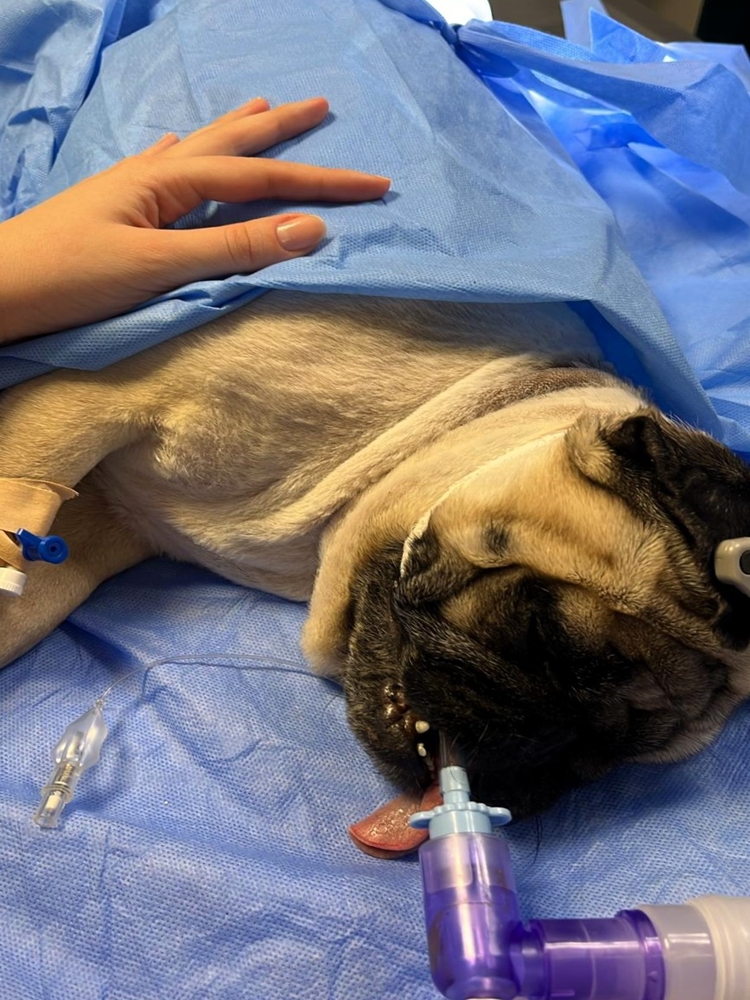 Animal Hospital Chief Physician Assistant Professor Tarık Şafak said in his statement on the subject, 'Surgeries generally involve risks as Pug breed dogs experience respiratory problems. "However, our animal hospital team brought our patient back to health with meticulous work," he said.