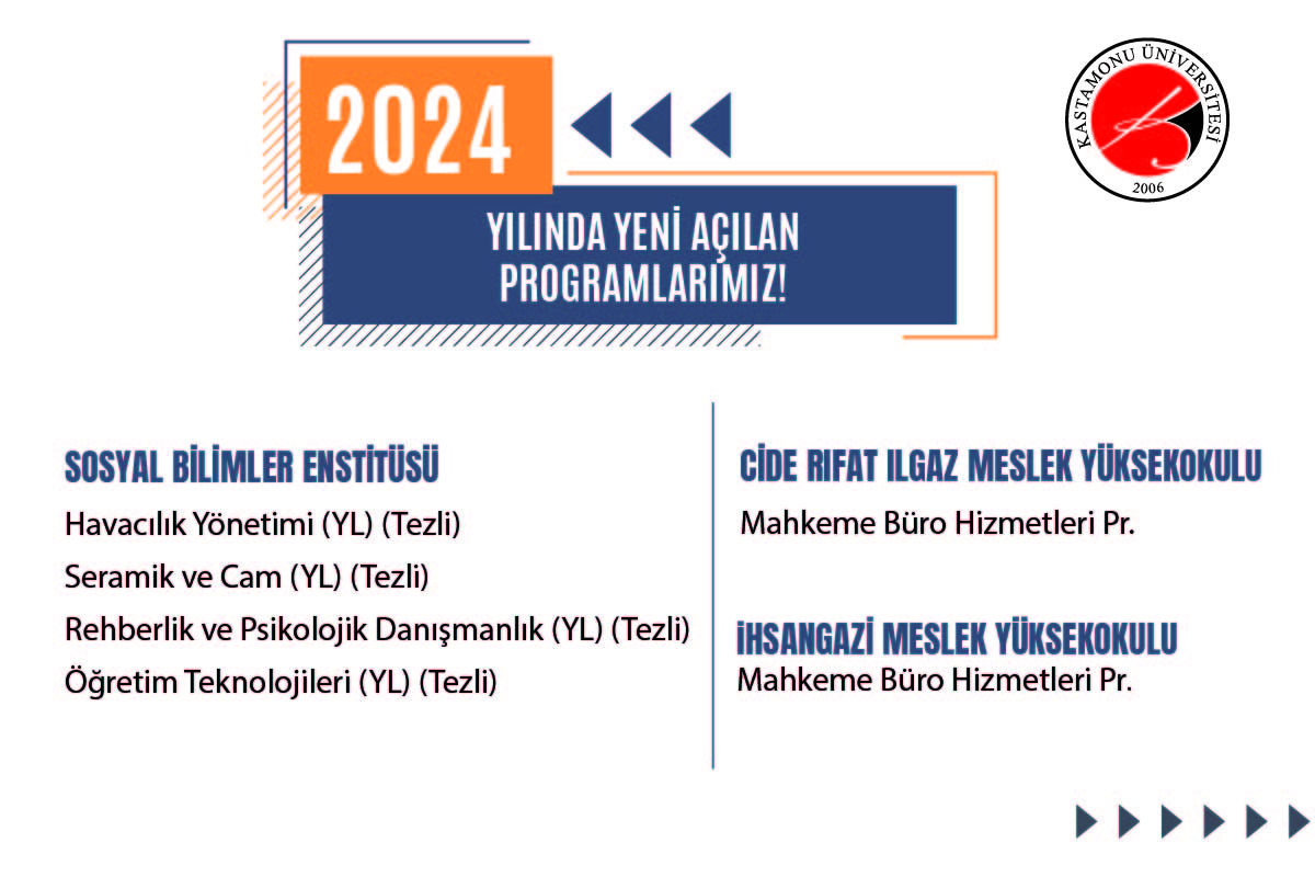 Of the newly opened programs, four are master's degree programs and two are associate degree programs; Aviation Management (Thesis Master's Degree), Ceramics and Glass (Thesis Master's Degree), Guidance and Psychological Counseling (Thesis Master's Degree) and Instructional Technologies (Thesis Master's) programs, and Court Office Services Programs were opened at Cide Rıfat Ilgaz Vocational School and İhsangazi Vocational School.