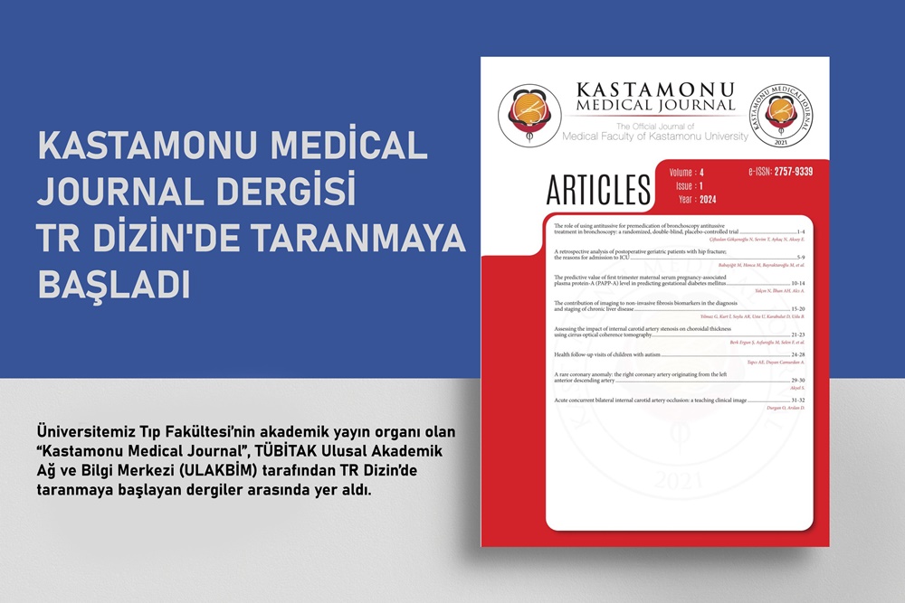Kastamonu Medical Journal (KASMEJ), the academic publication of the Faculty of Medicine of our university, was among the journals that started to be scanned in TÜBİTAK National Academic Network and Information Center (ULAKBIM) TR Index.