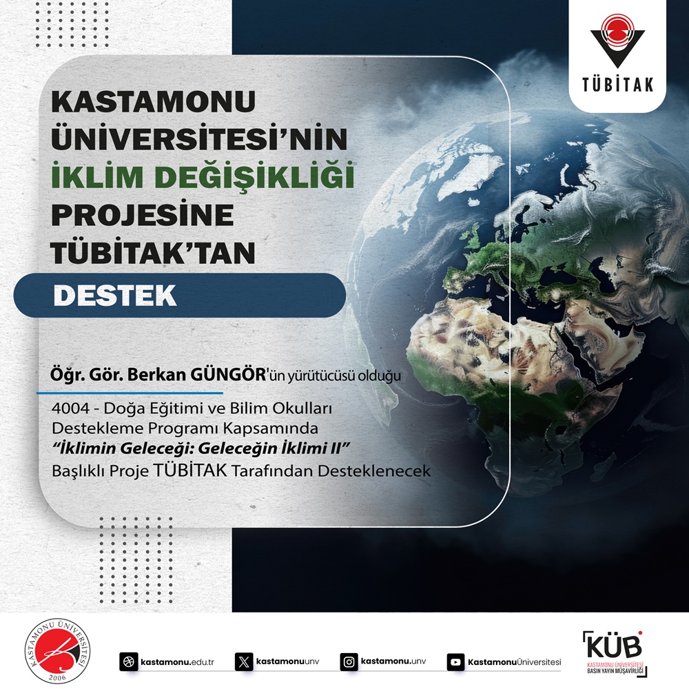 Within the scope of TÜBİTAK 4004—Nature Education and Science Schools Support Program, the project titled "Future of Climate: Climate of the Future II", led by Lecturer Berkan Güngör, one of the academicians of our University, was entitled to receive support.